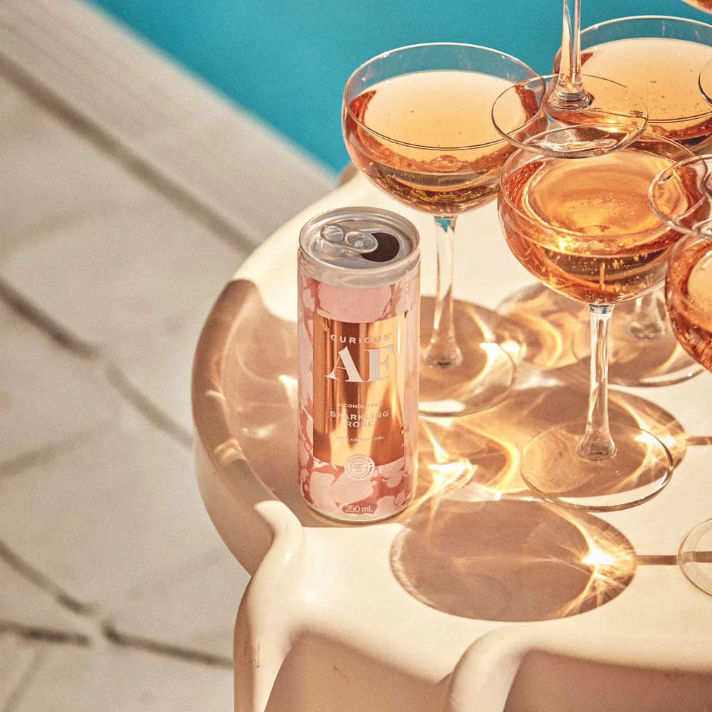 A deliciously crisp & light Sparkling Rosé in a can with zero alcohol. Perfect for the boozy brunch or long lunch, followed by a drive home in the cool night air. With Afterglow™.